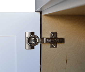 Our standard hinge is the Blum 110+ Clip-top Blumotion (soft-close) hinge. The hinge installs easily with no tools and allows doors to be adjusted in 3 directions. A "deactivation" switch on the hinge allows the Blumotion feature to be turned on or off depending upon individual preference. (this feature is commonly used on very small doors). Hinges are covered by a lifetime warranty*