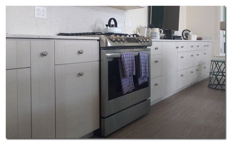 Cabinets with tight clean lines just look tidy. They are also easy to clean. In case you didn't watch our Cleaf stress-test video above, you can clean Cleaf cabinets with chemicals you wouldn't dare touch a painted or stained cabinet with.